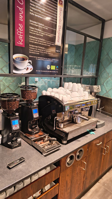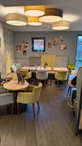 Unser Café bietet eine Siebträgermaschine und kaffeebegeisterte Mitarbeiter. Barrierefreier Zugang, Toiletten, Wickeltisch für Babys und eine Spielecke sorgen für Komfort für alle Gäste. Mit 30 Sitzplätzen im Café und weiteren 20 im Gartencafé ist es auch ideal zum Frühstücken in Gruppen.